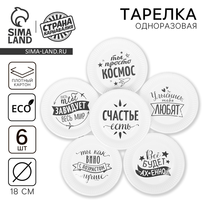 Тарелка одноразовая бумажная "Хвалебная", набор 6 шт, виды МИКС