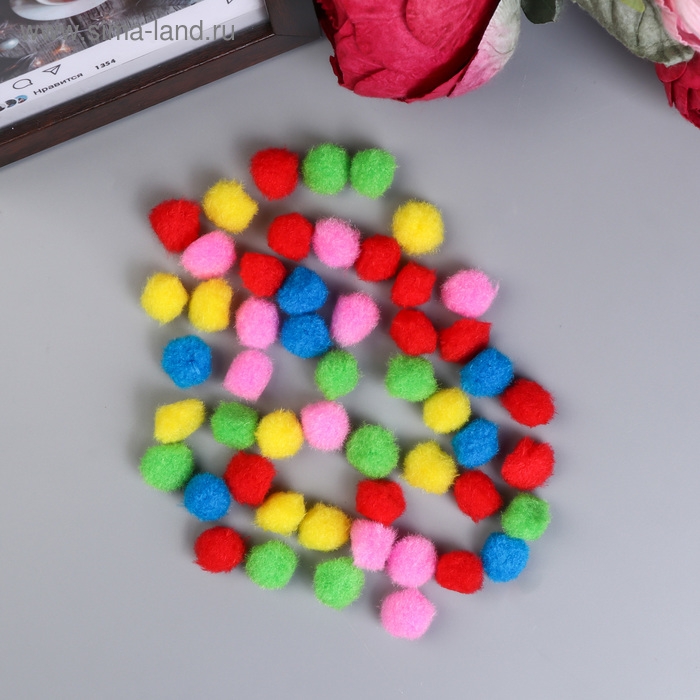 Помпоны для творчества, 5 цветов, 15 мм, (набор 50 шт) МИКС