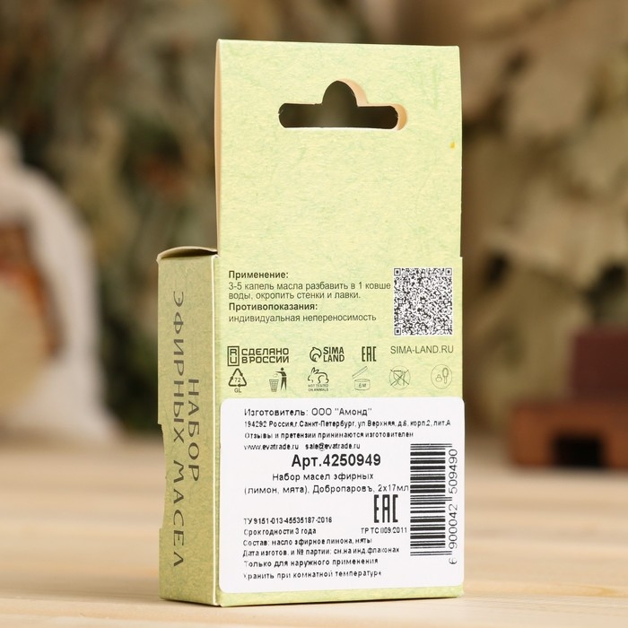 Набор эфирных масел лимон, мята "Добропаровъ", 2 шт по 17 мл