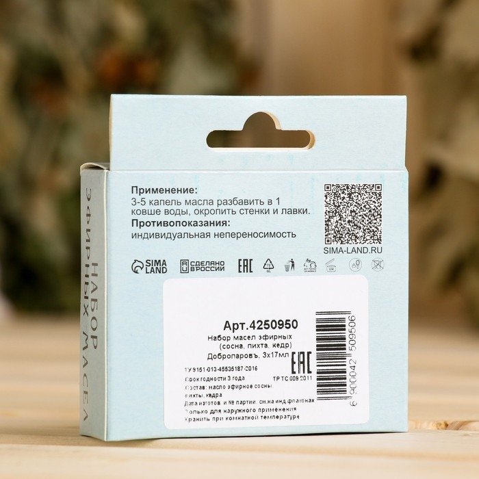 Набор эфирных масел сосна, пихта, кедр, "Добропаровъ",3 шт по 17 мл