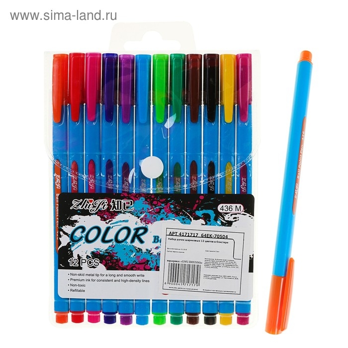 Набор ручек шариковых 12 цветов, корпус треугольный, блистер