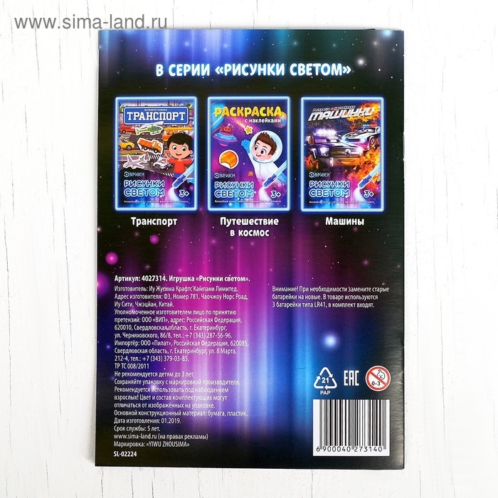 С помощью активити-книжки и специального маркера ребёнок научится рисовать светом. Малыш будет создавать картинки, используя трафареты, или придумает собственные сюжеты.