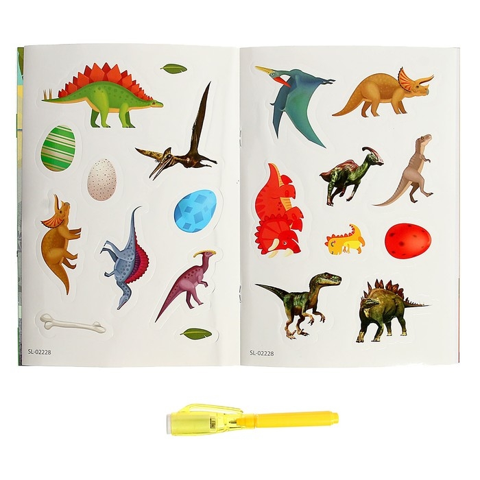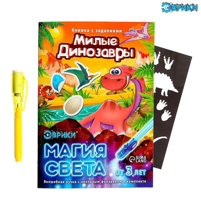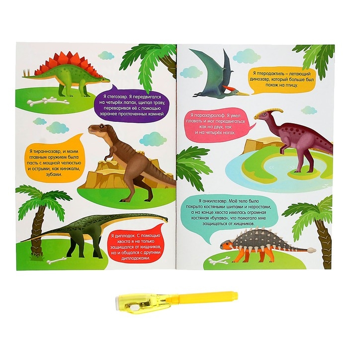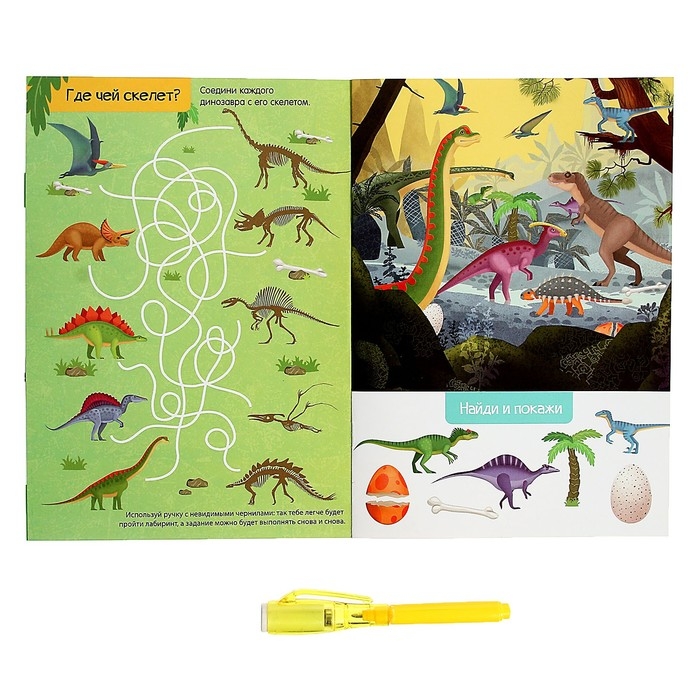 Активити-книжка с рисунками светом «Динозавры», ручка с фонариком и невидимыми чернилами