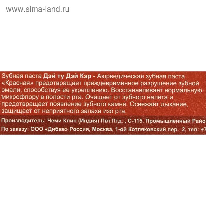 Зубная паста аюрведическая «Дэй Ту Дэй Кэр», защита от кариеса, 100 г