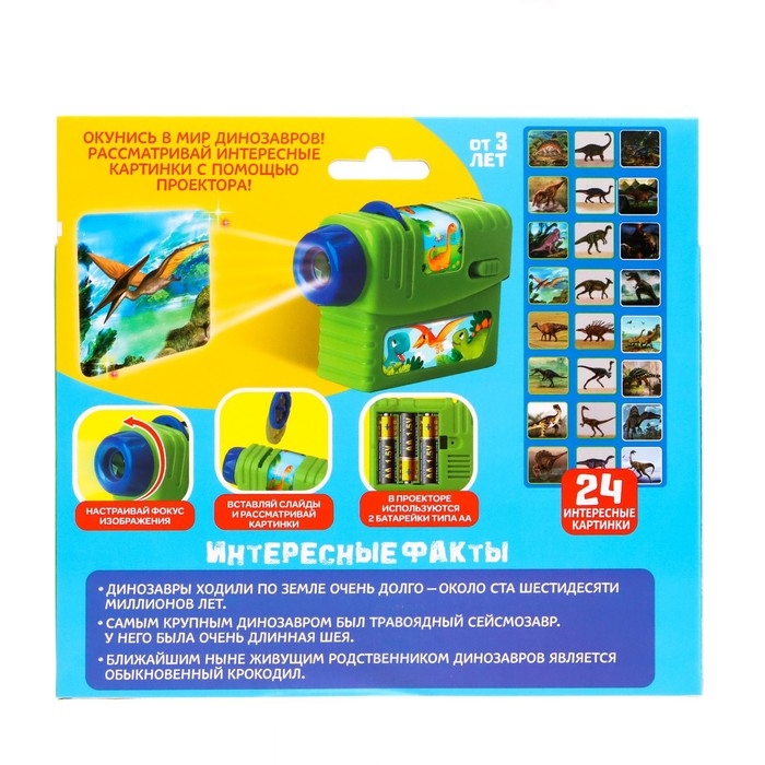 Проектор «Эра динозавров», 3 слайда, 24 картинки