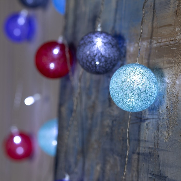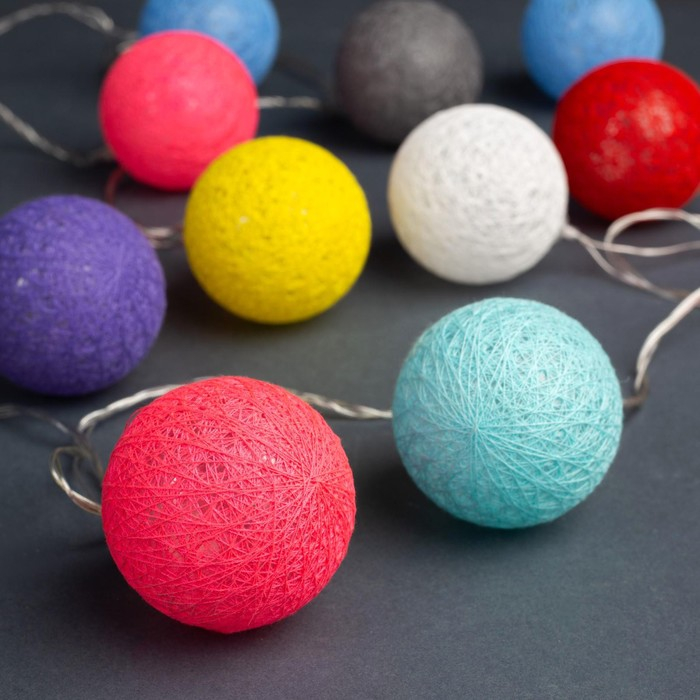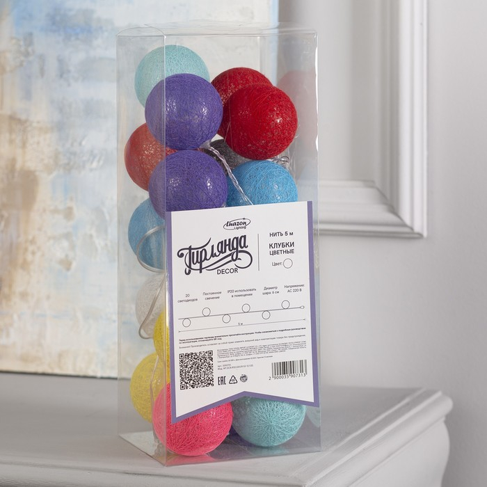 Гирлянда «Нить» 5 м с насадками «Клубки цветные», IP20, прозрачная нить, 20 LED, свечение белое, 220 В