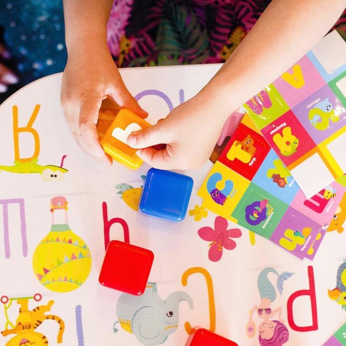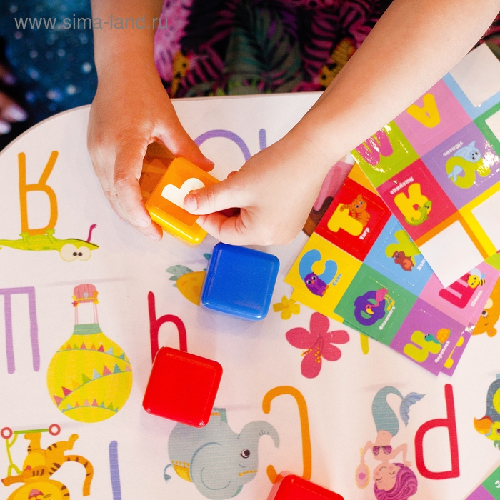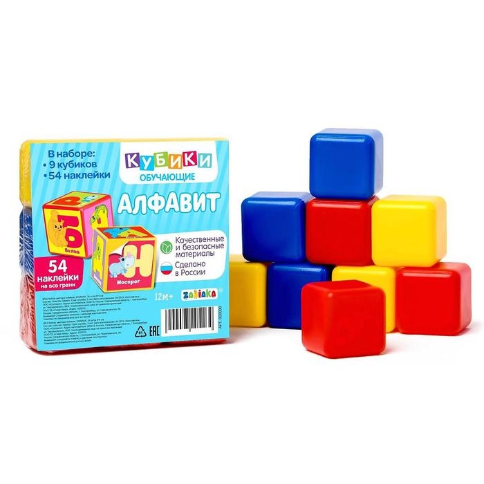 Яркие кубики с набором наклеек познакомят малыша с алфавитом.