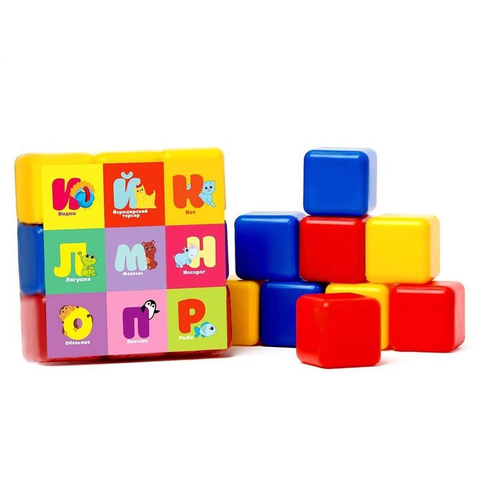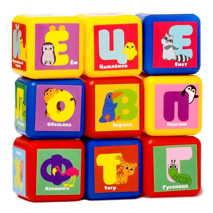 Кубики для малышей «Алфавит», пластиковые, цветные , 9 штук, 4 х 4 см, по методике Монтессори