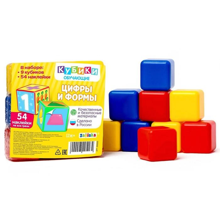 Яркие кубики с набором наклеек познакомят малыша с цифрами.