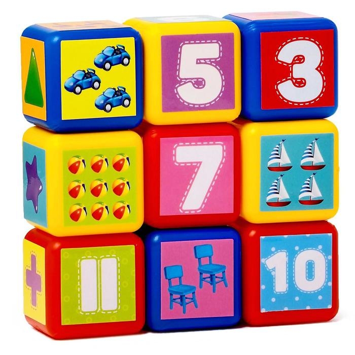 Набор цветных кубиков «Счёт», 9 штук, 4 х 4 см, по методике Монтессори
