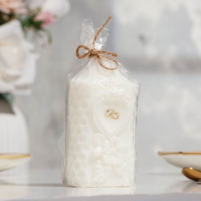 Свеча-цилиндр свадебная "Камея", белая, 6×11 см