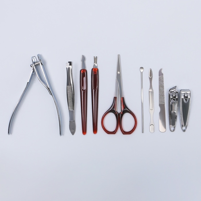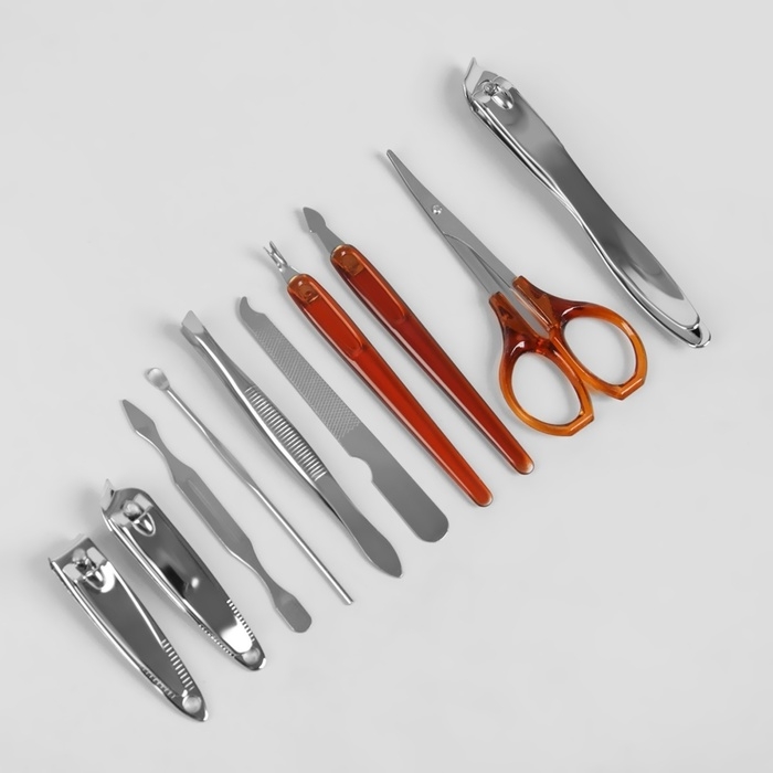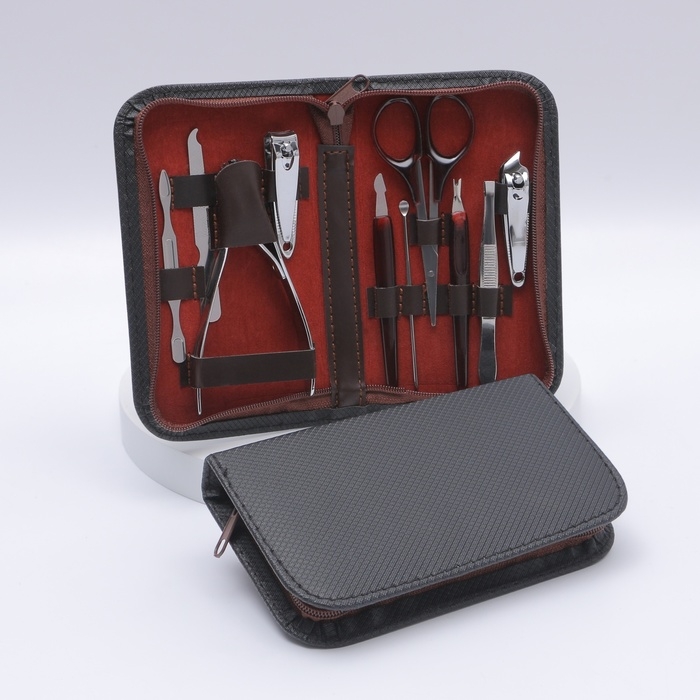 Набор маникюрный, 10 предметов, в футляре, цвет тёмно-серый