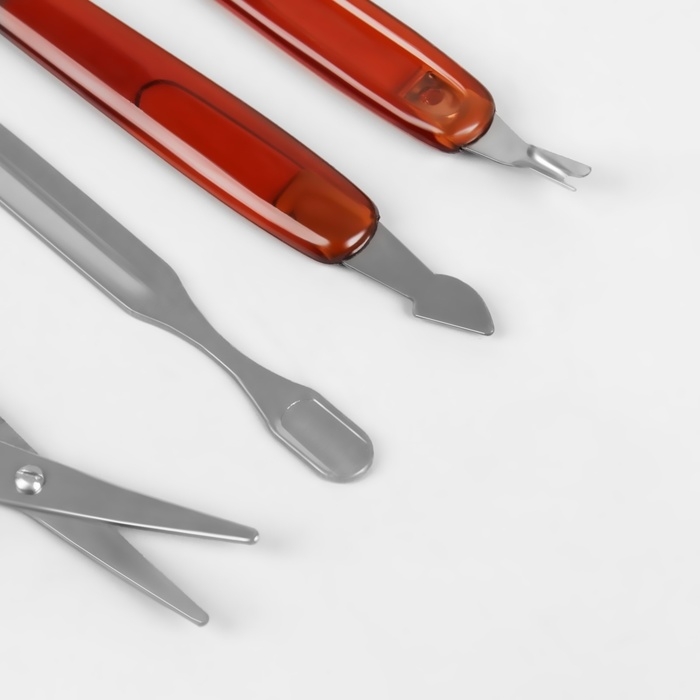 Набор маникюрный, 7 предметов, в футляре, цвет красный