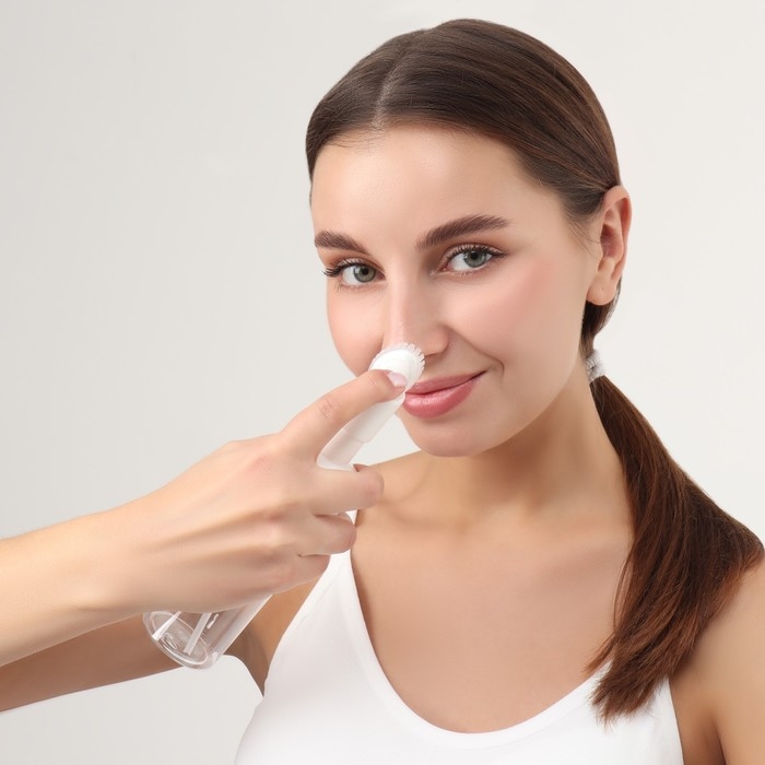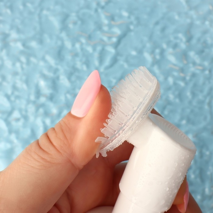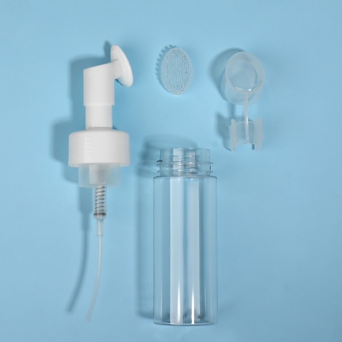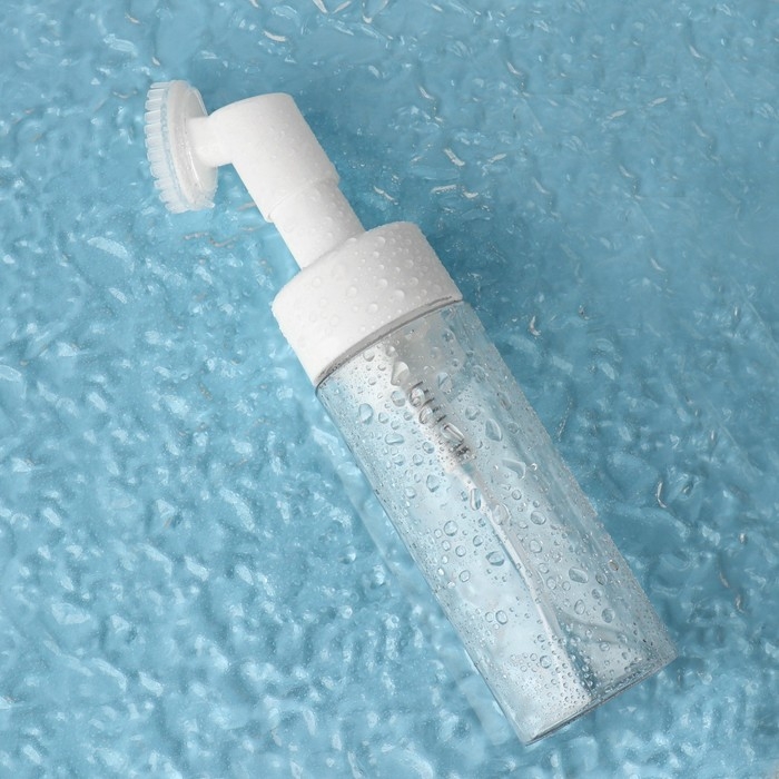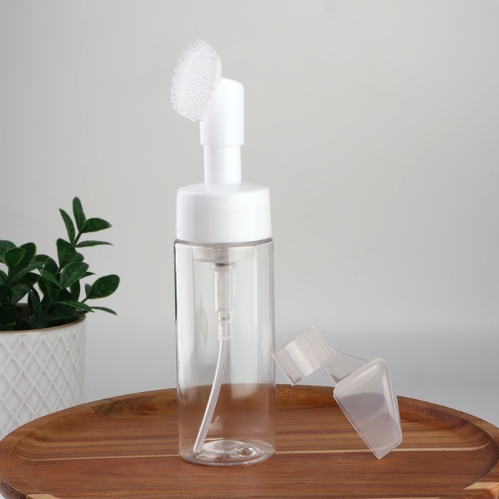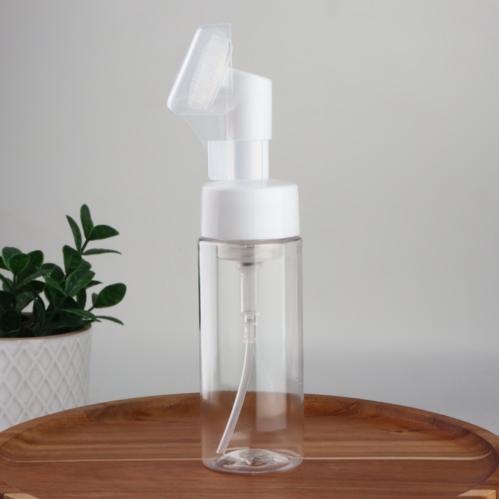 Бутылочка с щёткой для умывания, с дозатором, 150 мл, цвет белый/прозрачный