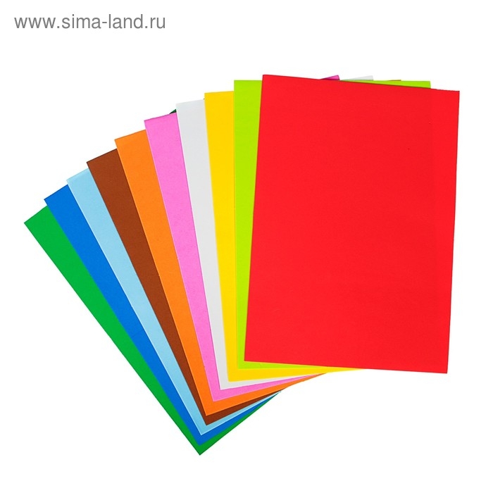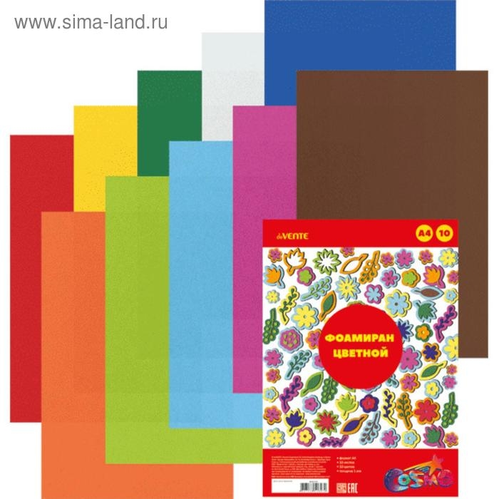 Фоамиран цветной A4 deVENTE 10 цветов, 10 листов, толщина 1 мм, пластиковый пакет с европодвесом.