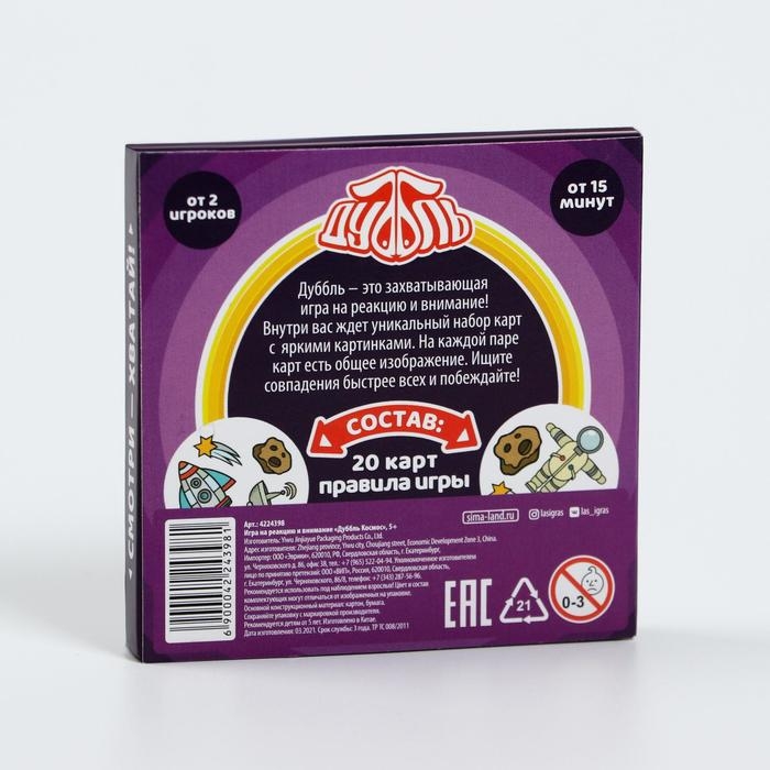 Настольная игра на реакцию и внимание «Дуббль. Космос», 20 карт, 5+