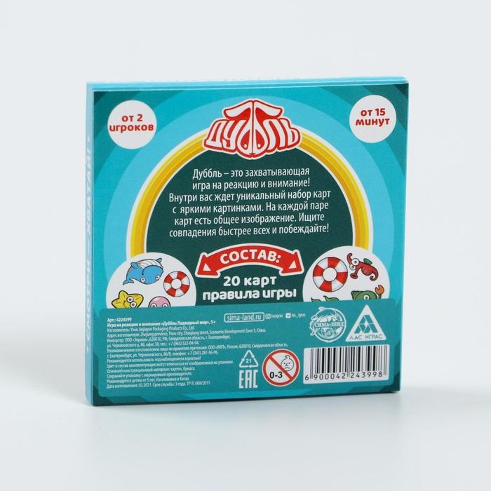 Настольная игра на реакцию и внимание «Дуббль. Подводный мир», 20 карт, 5+