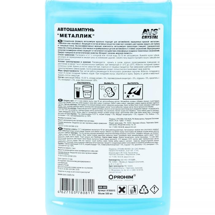 Автошампунь AVS Металлик, 500 мл, AVK-002, контактный