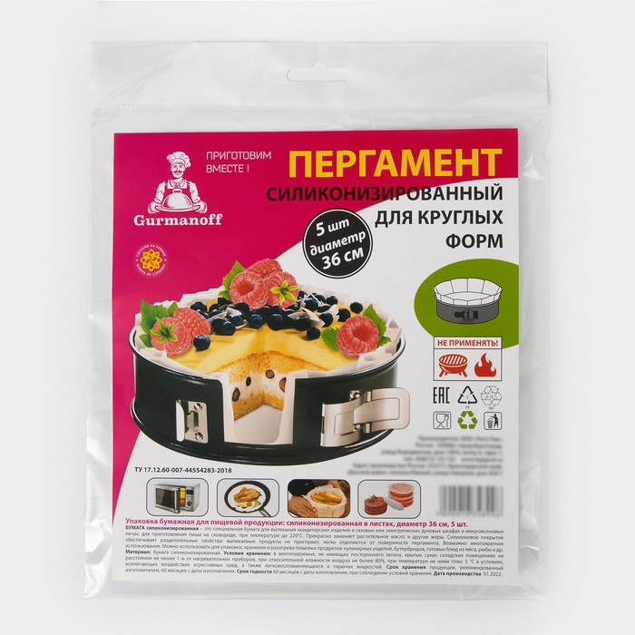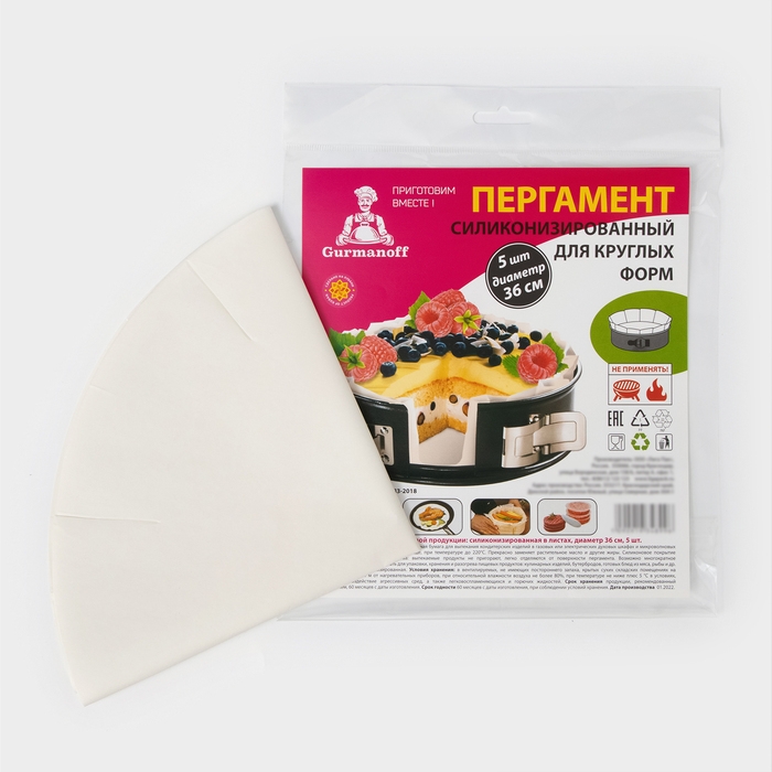 Пергамент силиконизированный для круглых форм Gurmanoff, d=36 см, набор 5 штук