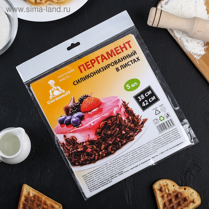 Пергамент силиконизированный в листах «Gurmanoff», 38×42 см, набор 5 штук