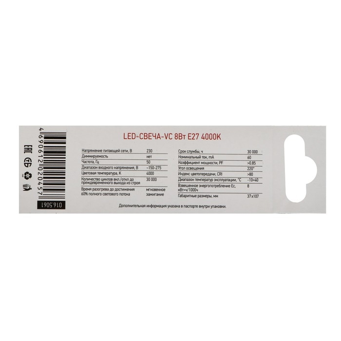 Главное преимущество лампы, созданных по технологии «VISION CARE», – безопасность для здоровья человека. В отличие от других ламп, LED-СВЕЧА-VC не мерцает и не пульсирует, а значит не вызывает усталости глаз и не приводит к снижению зрения. Кроме того, по сравнению с лампой накаливания, ее использование позволяет сэкономить до 90 % затрат на электроэнергию. Светодиодная лампа-свеча мало потребляет, светит ярко и равномерно, практически не нагревается и прослужит не менее 30 000 часов. Лампа создает естественный дневной свет нейтрального спектра — 4000К.