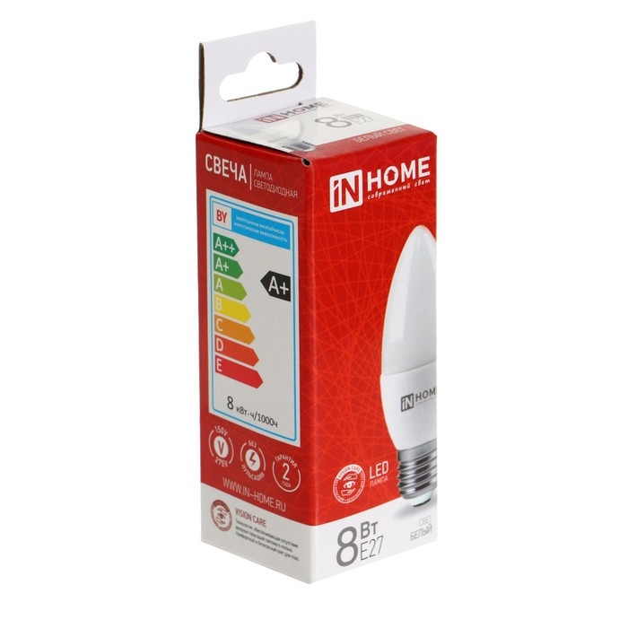 Лампа светодиодная IN HOME LED-СВЕЧА-VC, Е27, 8 Вт, 230 В, 4000 К, 720 Лм