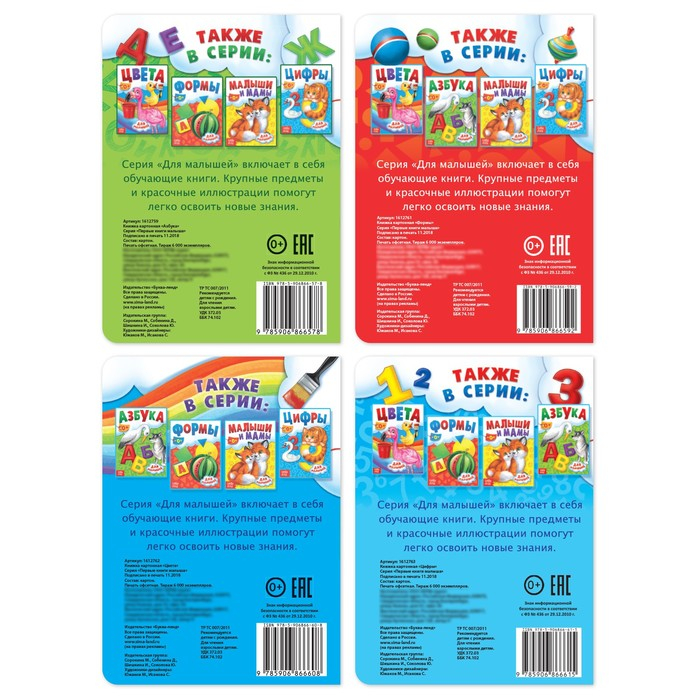 Книги картонные развивающие, набор 4 шт., по 10 стр.
