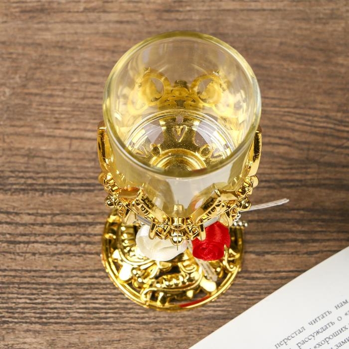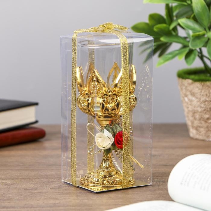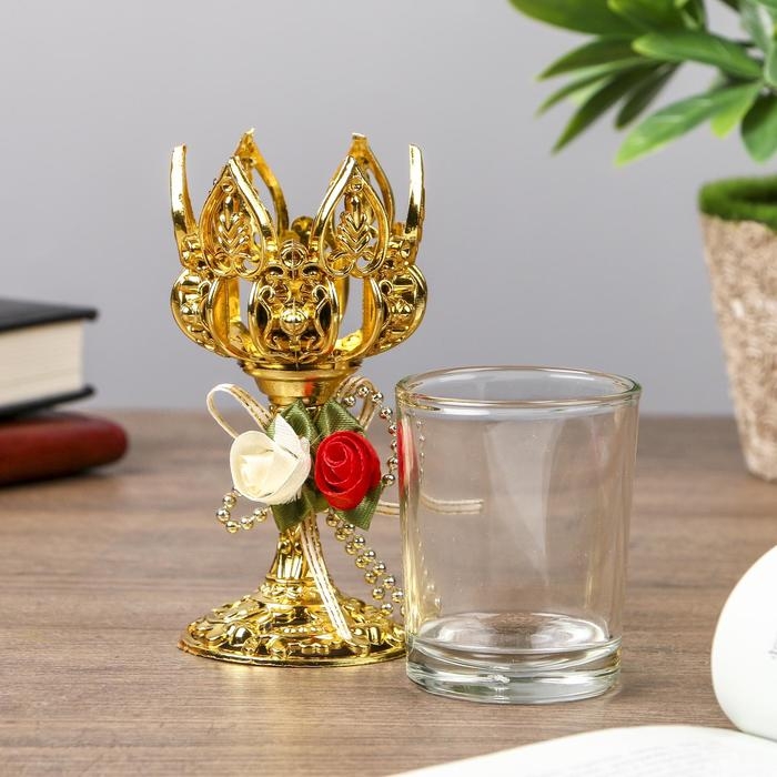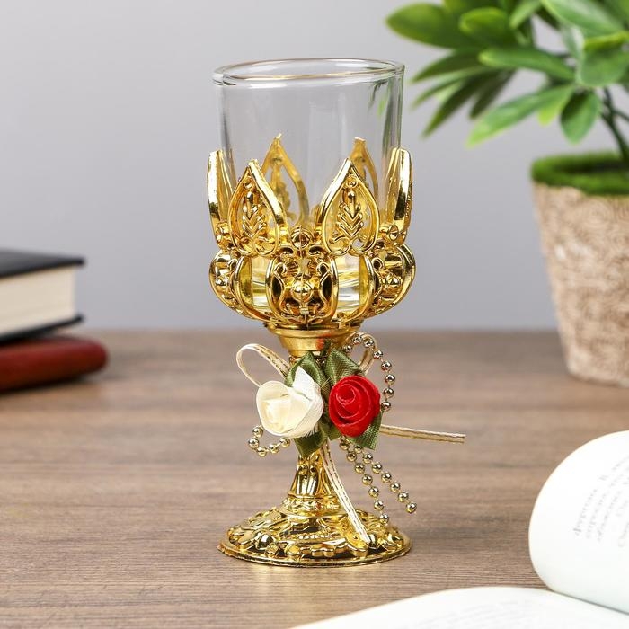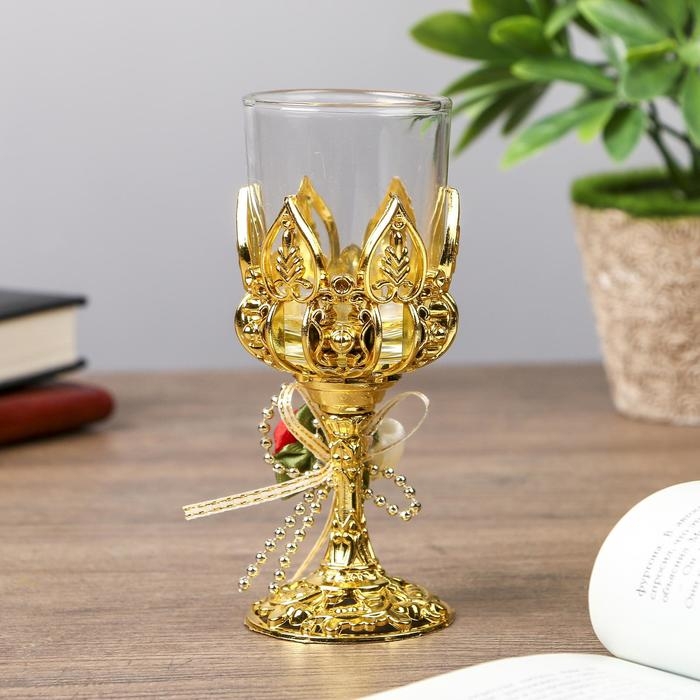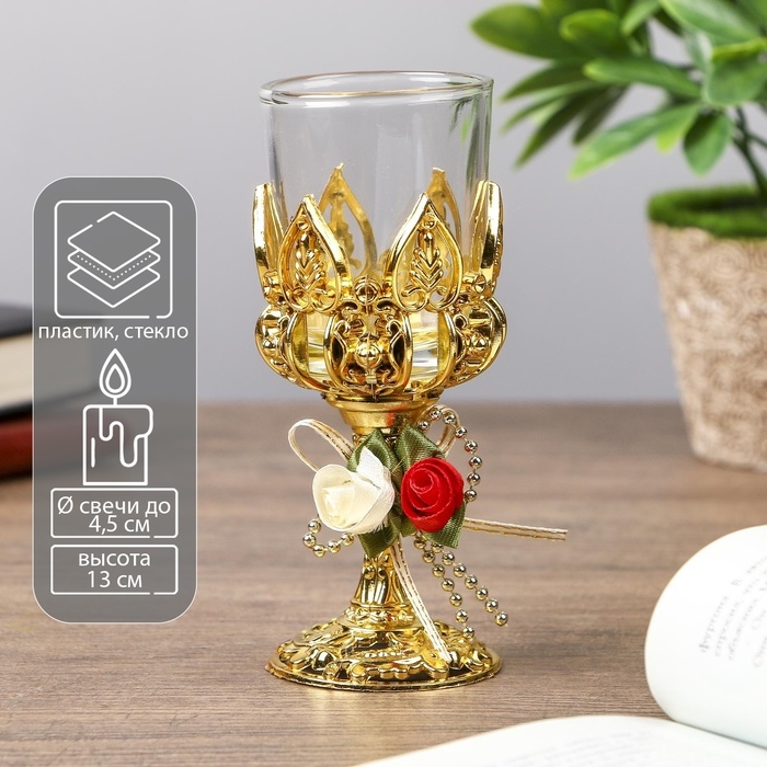Подсвечник пластик, стекло на 1 свечу "Розочки" бокал на ножке золото 13х6х6 см