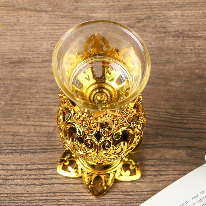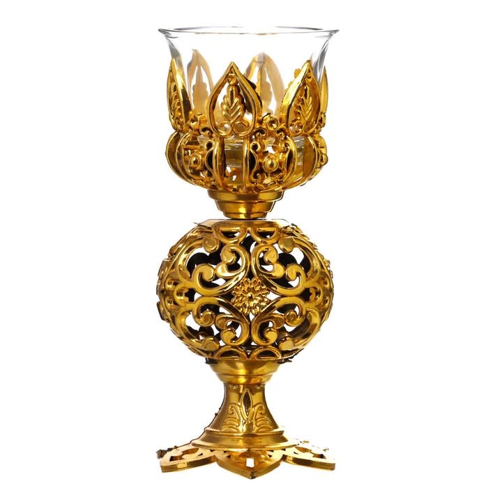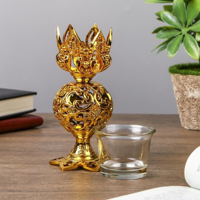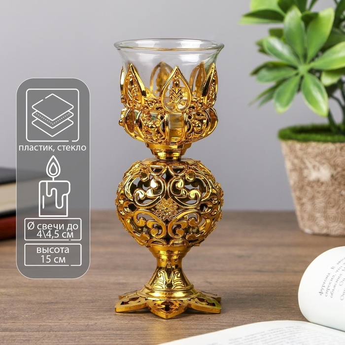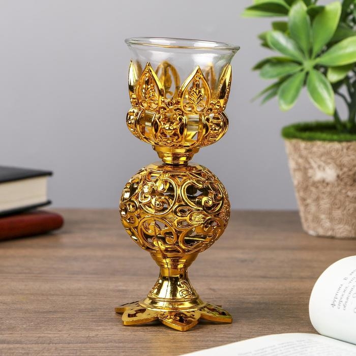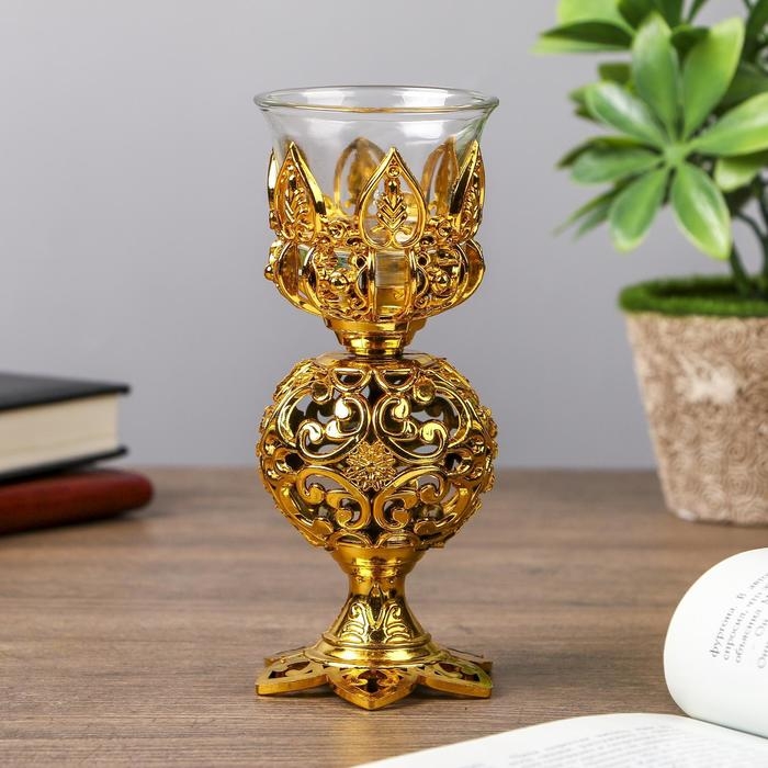 Подсвечник пластик, стекло на 1 свечу "Ажурный шар" бокал на ножке золото 15х6х6 см