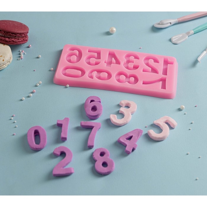 Молд «Цифры», силикон, 17,5×7,6 см, цвет розовый
