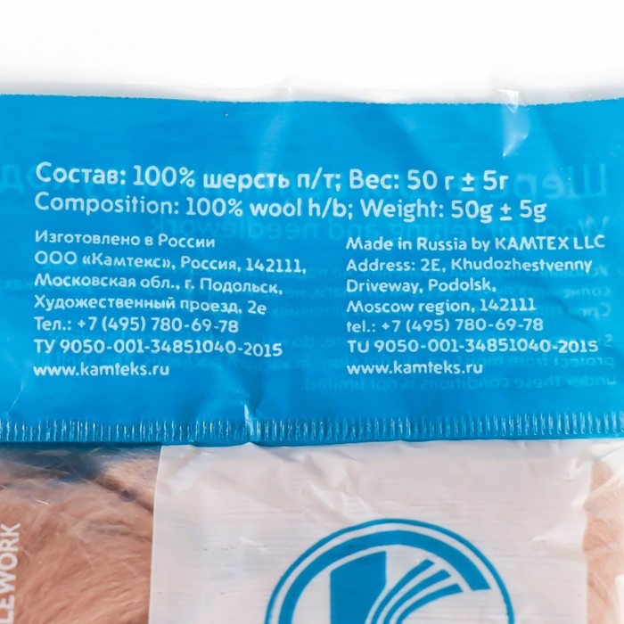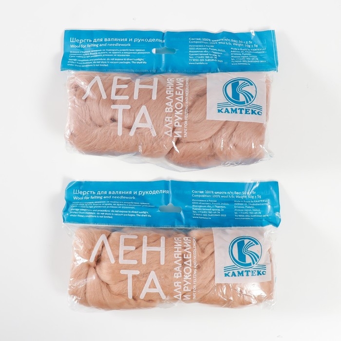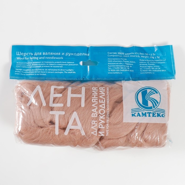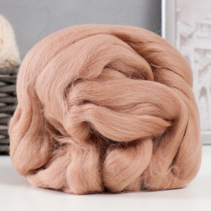 Шерсть для валяния 100% полутонкая шерсть 50 гр (006, св. бежевый) МИКС