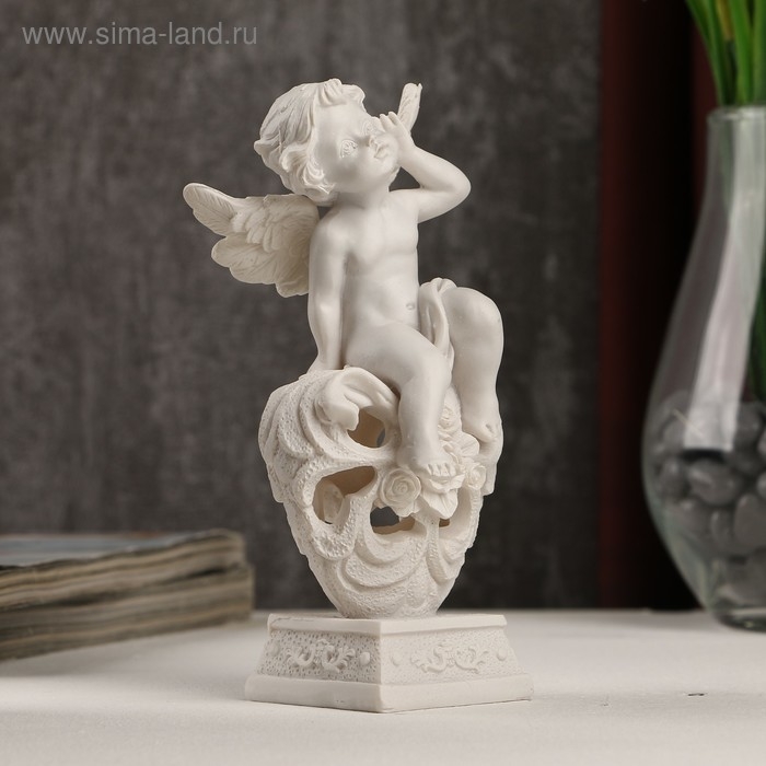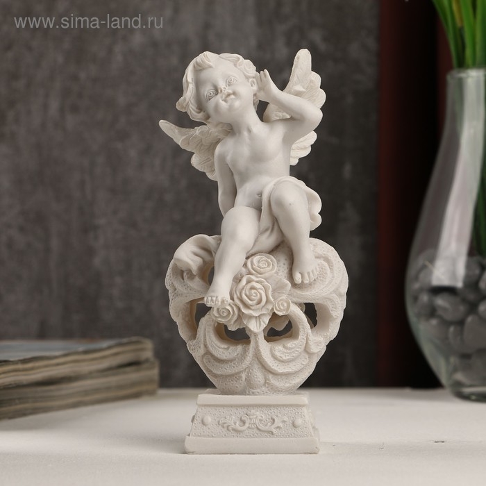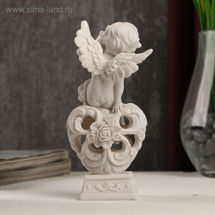 Сувенир полистоун "Белоснежный ангел на ажурном сердце" 13х6х5,5 см