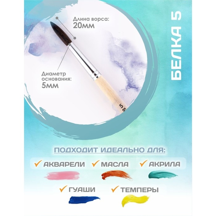 Кисть для рисования, Белка круглая № 5 (диаметр обоймы 5 мм; длина волоса 20 мм), деревянная ручка, Calligrata