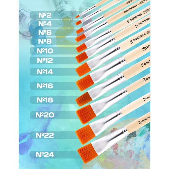 Синтетический волос имеет гладкую структуру и обладает капиллярным эффектом, что позволяет использовать такие кисти при работе с акварелью, гуашью, темперой, акрилом и маслом.
