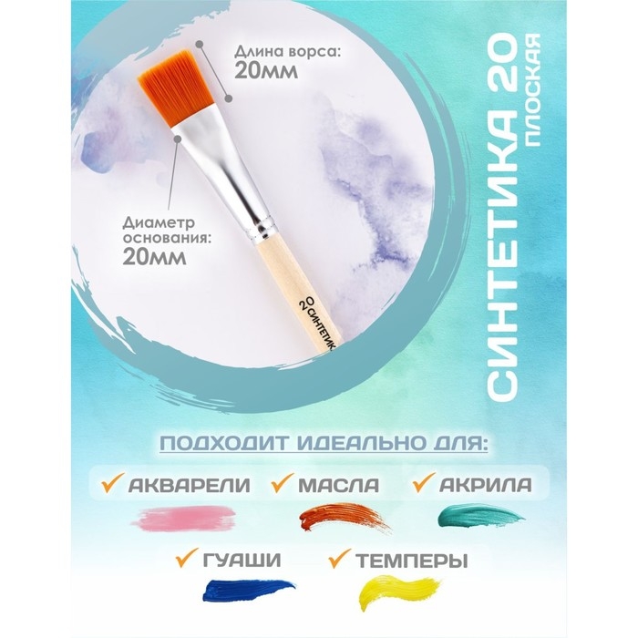 Синтетический волос имеет гладкую структуру и обладает капиллярным эффектом, что позволяет использовать такие кисти при работе с акварелью, гуашью, темперой, акрилом и маслом.