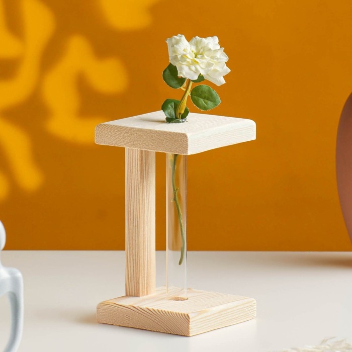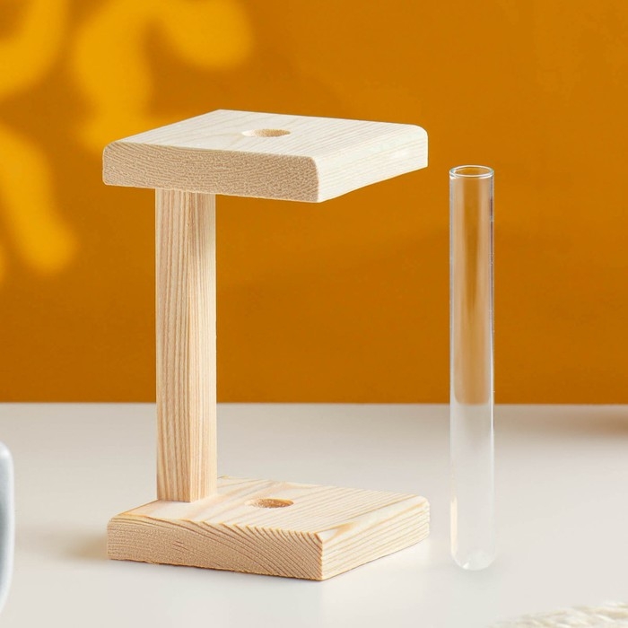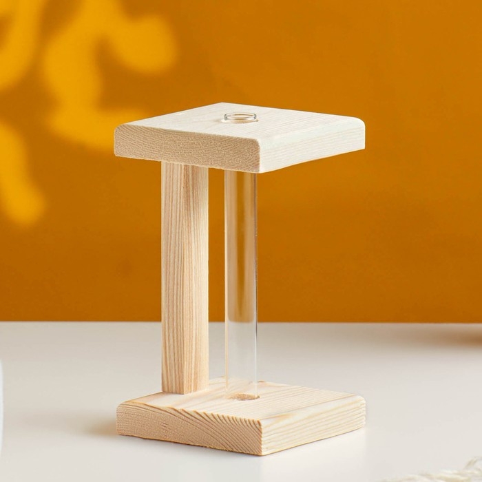 Кашпо деревянное 9×9×16,5 см с 1 колбой "Квадрат", натуральный Дарим Красиво