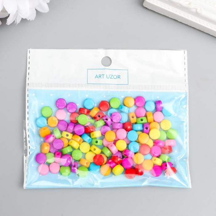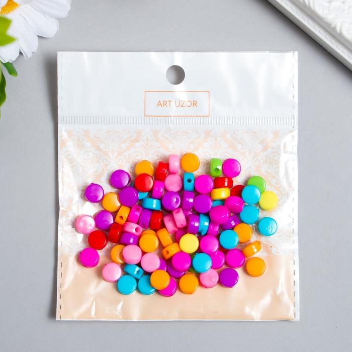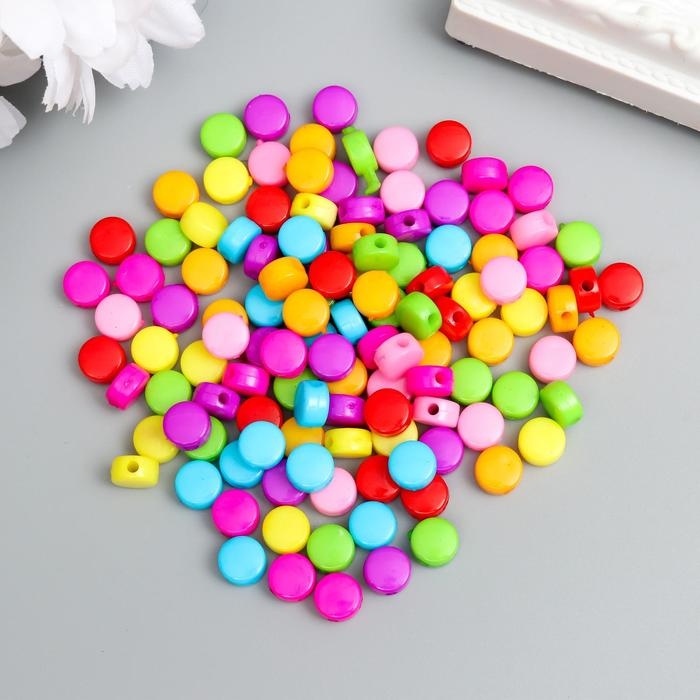 Бусины для творчества пластик "Цветные кругляшки" набор 120 шт 0,3х0,6х0,6 см