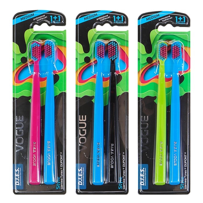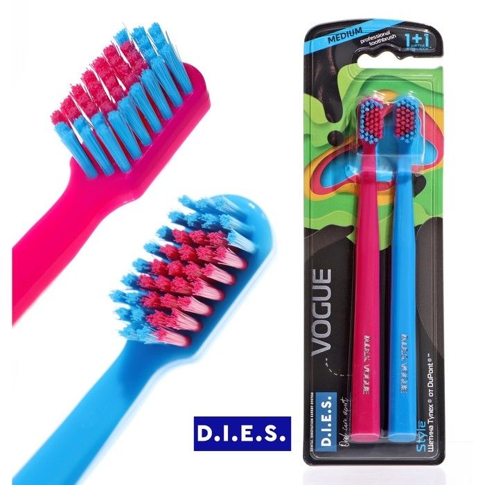 Зубная щётка D.I.E.S. Vogue Style средней жёсткости, 1+1 шт.