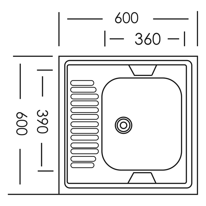 Мойка кухонная "Владикс", накладная, без сифона, 60х60 см, правая, нержавеющая сталь 0.4 мм