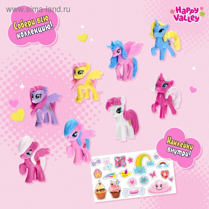 - Каждое яйцо хранит в себе уникальную фигурку пони. Разные цвета, позы и аксессуары сделают коллекцию еще интереснее.
