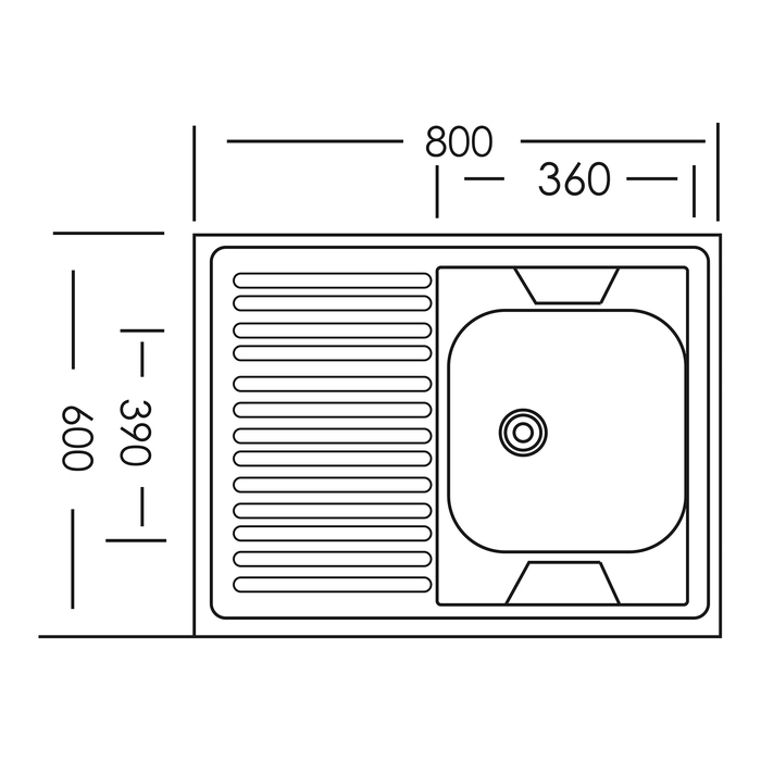 Мойка кухонная "Владикс", накладная, без сифона, 80х60 см, правая, нержавеющая сталь 0.4 мм