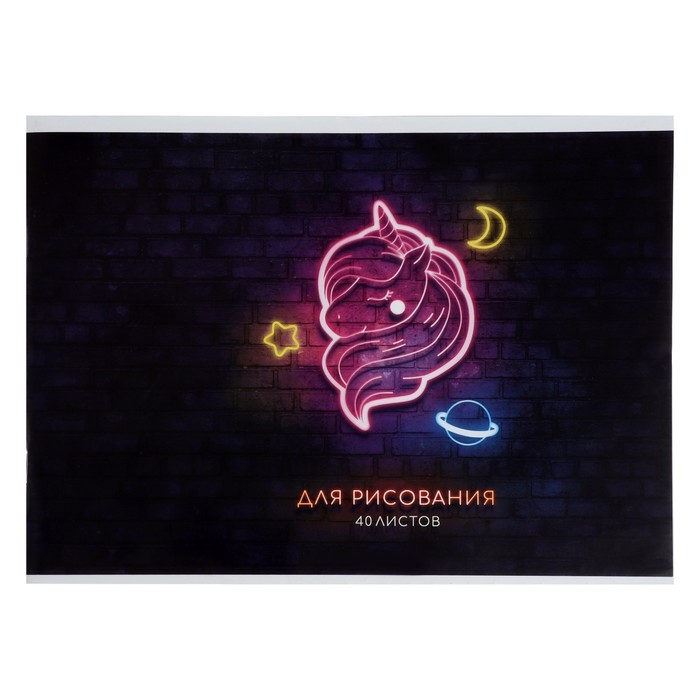 Альбом для рисования А4, 40 листов на скрепке "Единорог. Неон", обложка мелованный картон, блок 100 г/м²
