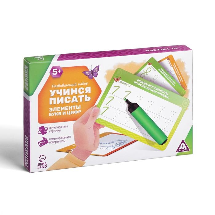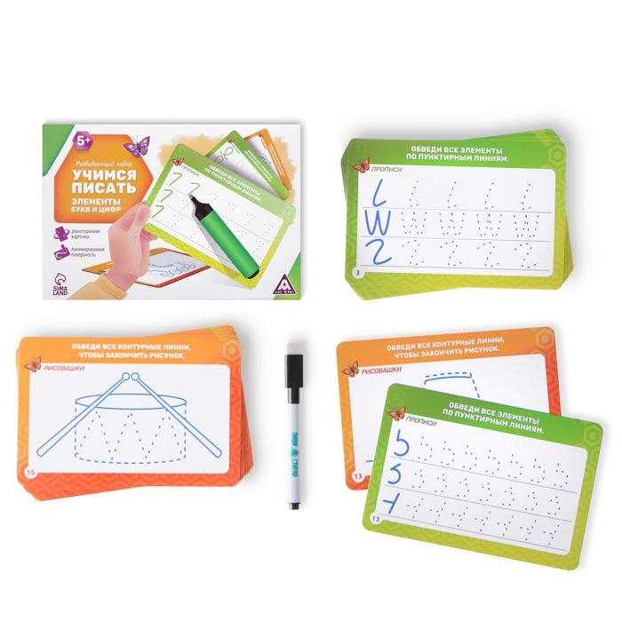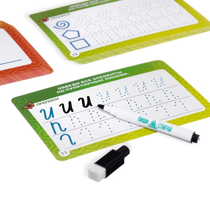 Развивающий набор пиши-стирай «Учимся писать элементы букв и цифр», 20 карт
