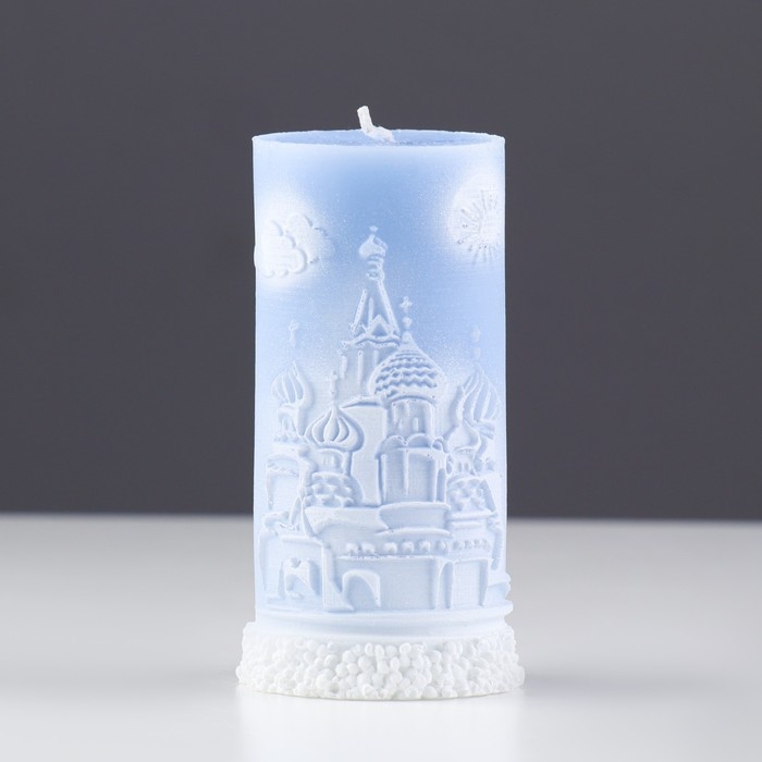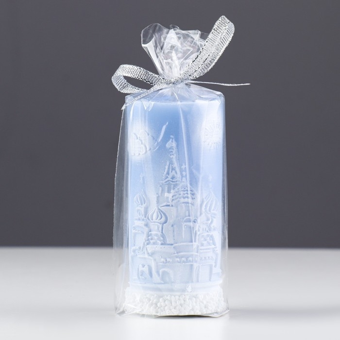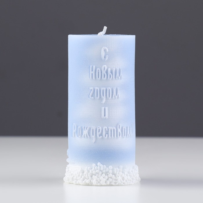Свеча - цилиндр "С Рождеством!", 4,7×10 см, голубая