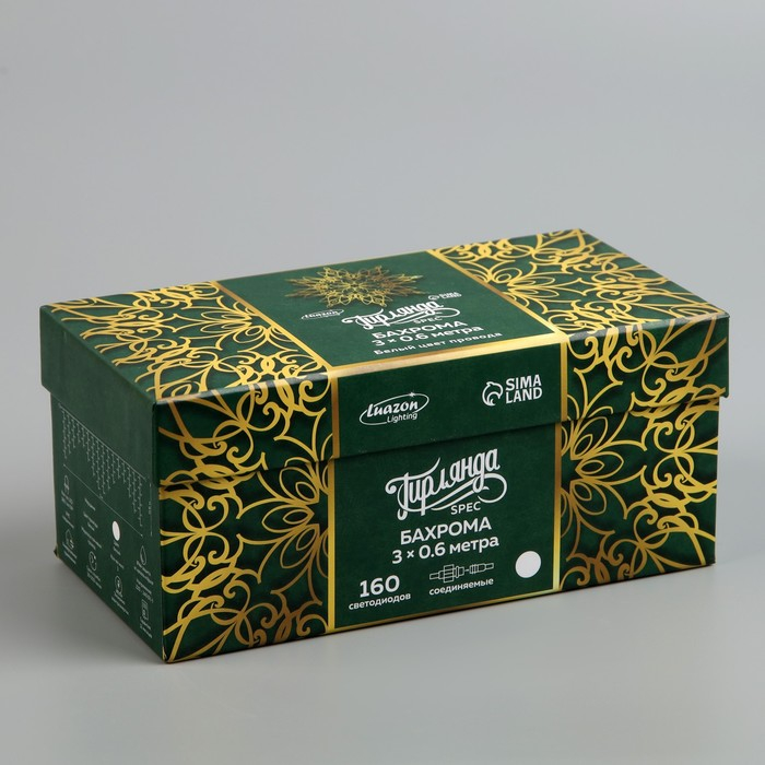 Гирлянда «Бахрома» 3 × 0.6 м, IP44, УМС, белая нить, 160 LED, свечение белое, мерцание белым, 220 В