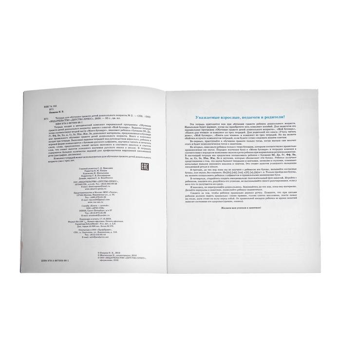 Тетрадь для обучения грамоте детей дошкольного возраста №2, Нищева Н. В., 2022