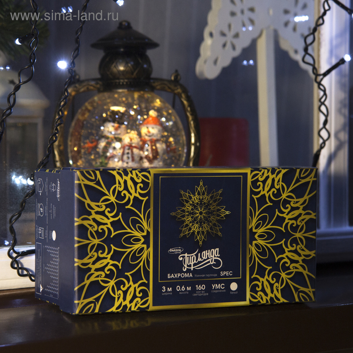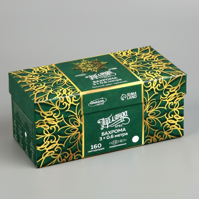 Гирлянда «Бахрома» 3 × 0.6 м, IP44, УМС, тёмная нить, 160 LED, свечение белое, мерцание белым, 220 В