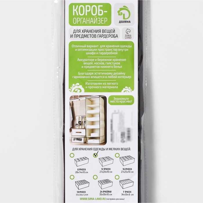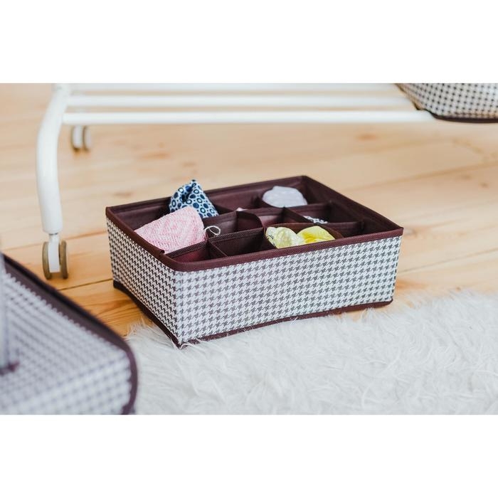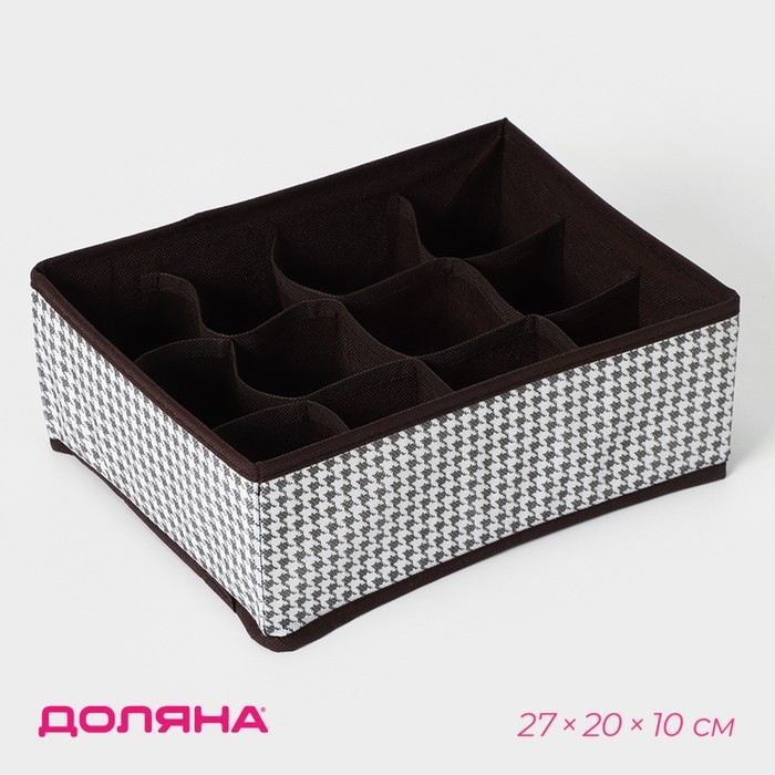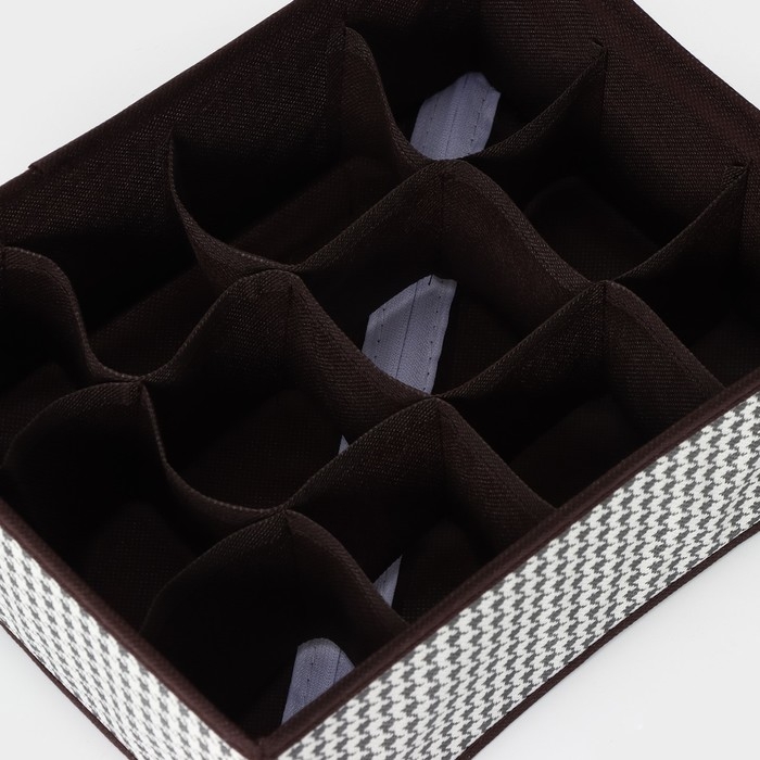 Органайзер для хранения белья Доляна «Вилли», 12 ячеек, 27×20×10 см, коричневый