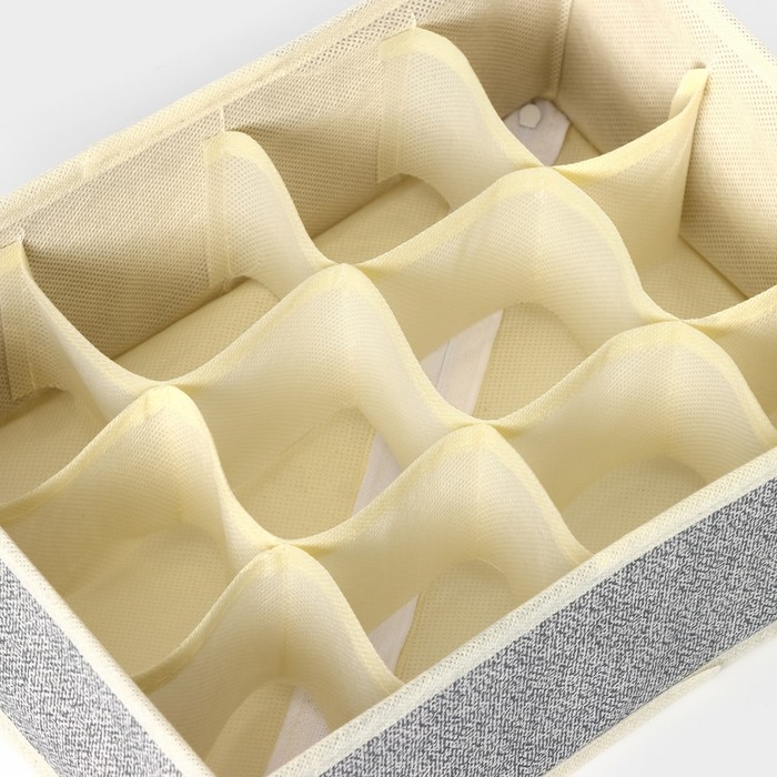 Органайзер для хранения белья Доляна «Европа», 12 ячеек, 27×20×10 см, цвет бежевый