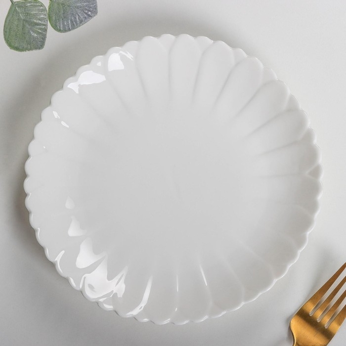 Тарелка фарфоровая обеденная Magistro «Цветок», d=19 см, цвет белый